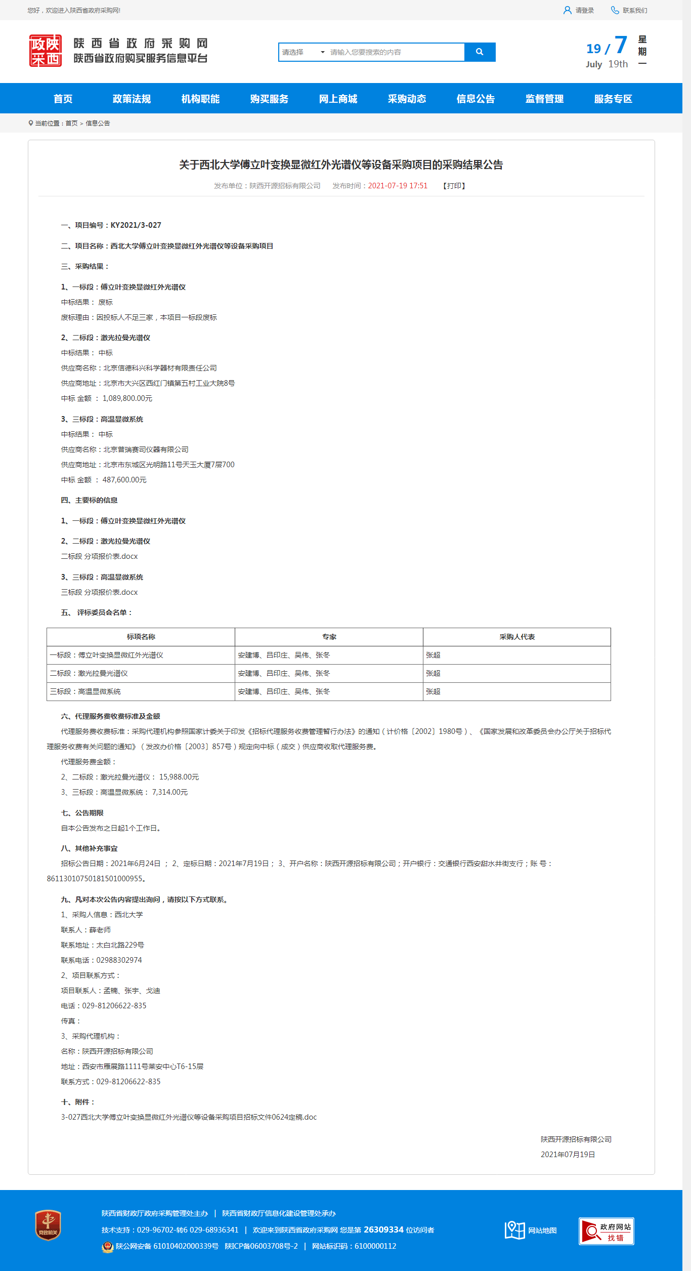 关于伟德国际1949始于英国傅立叶变换显微红外光谱仪等设备采购项目的采购结果公告 作者: 编辑:采购与招标办公室 时间:2021-07-19 原公告地址:http://www.ccgp-shaanxi.gov.cn/notice/noticeDetail.do?noticeguid=8a85be337a79620e017abdb0b9d25220