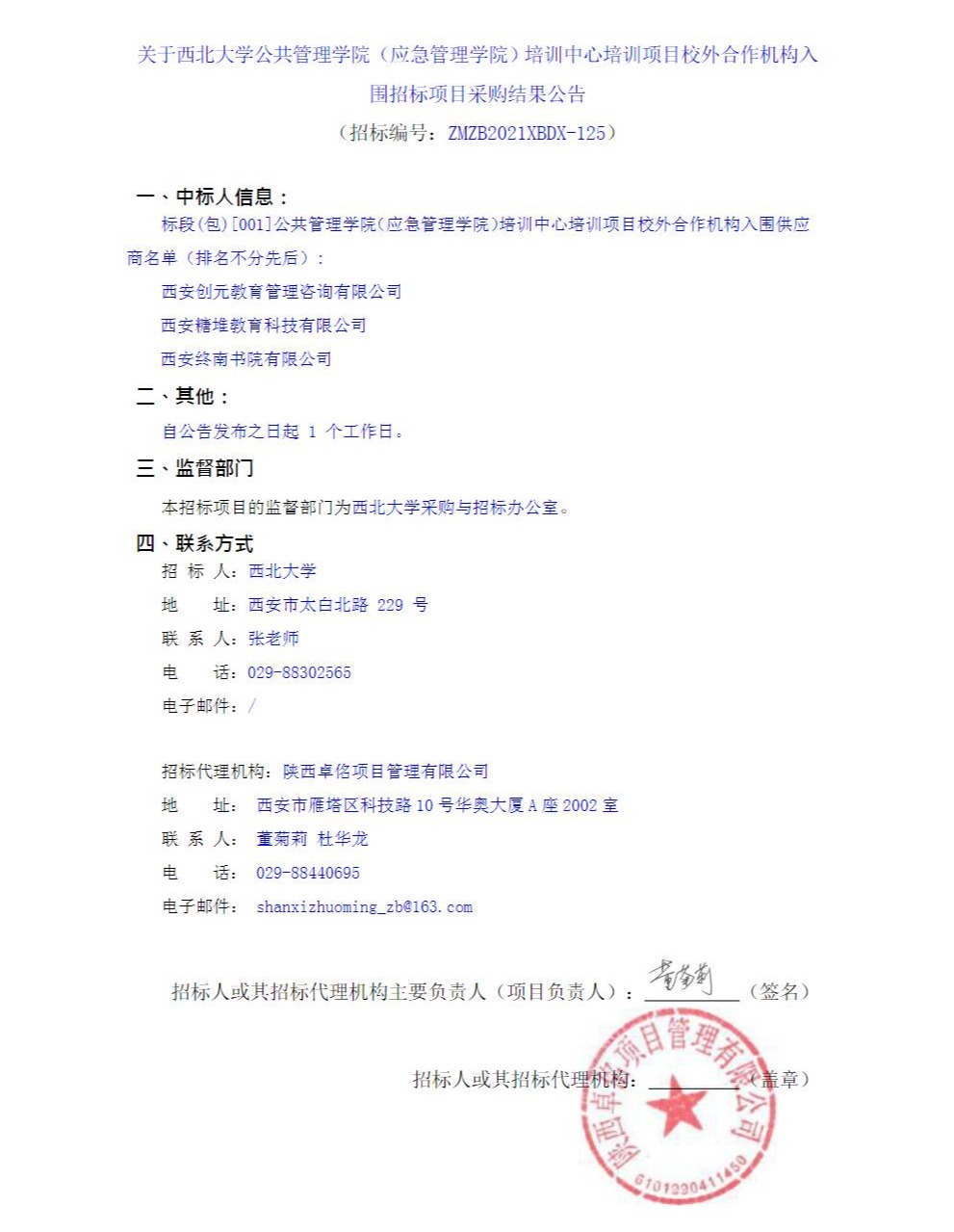 关于伟德国际1949始于英国公共管理学院(应急管理学院)培训中心培训项目校外合作机构入围招标项目采购结果公告