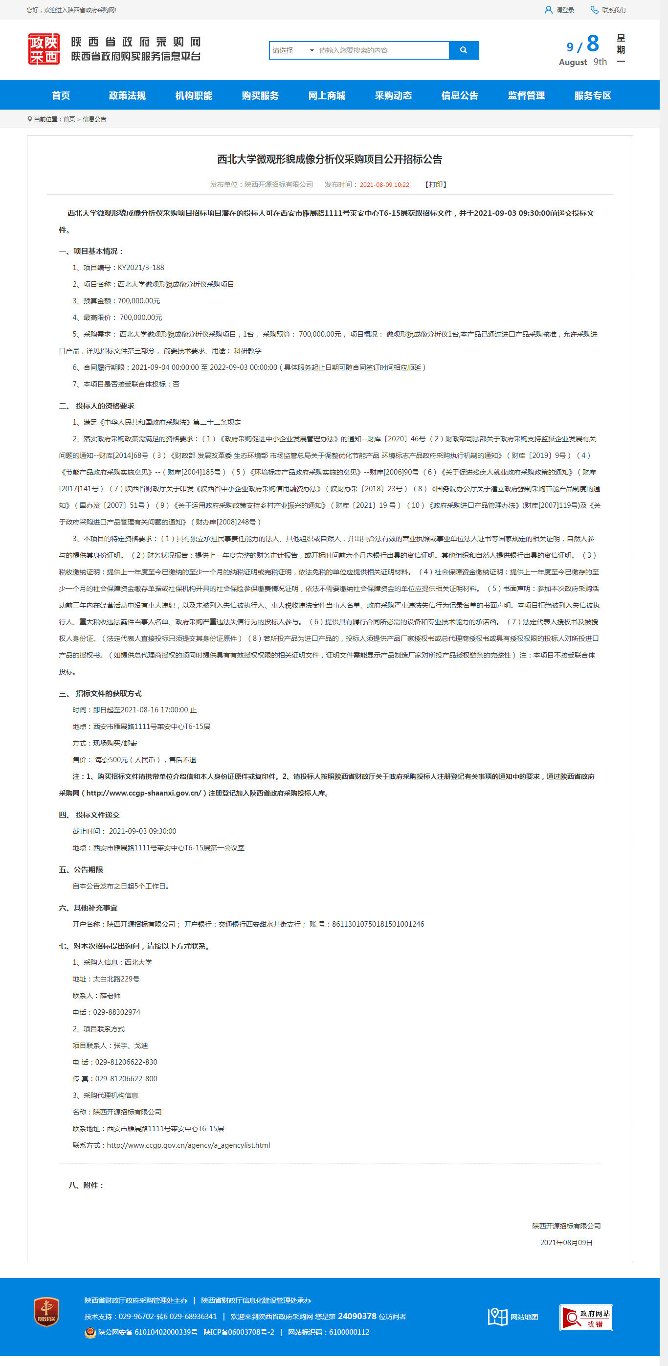 伟德国际1949始于英国微观形貌成像分析仪采购项目公开招标公告 作者: 编辑:采购与招标办公室 时间:2021-08-09 原公告地址:http://www.ccgp-shaanxi.gov.cn/notice/noticeDetail.do?noticeguid=8a85be347b04610d017b2881fd8505e0
