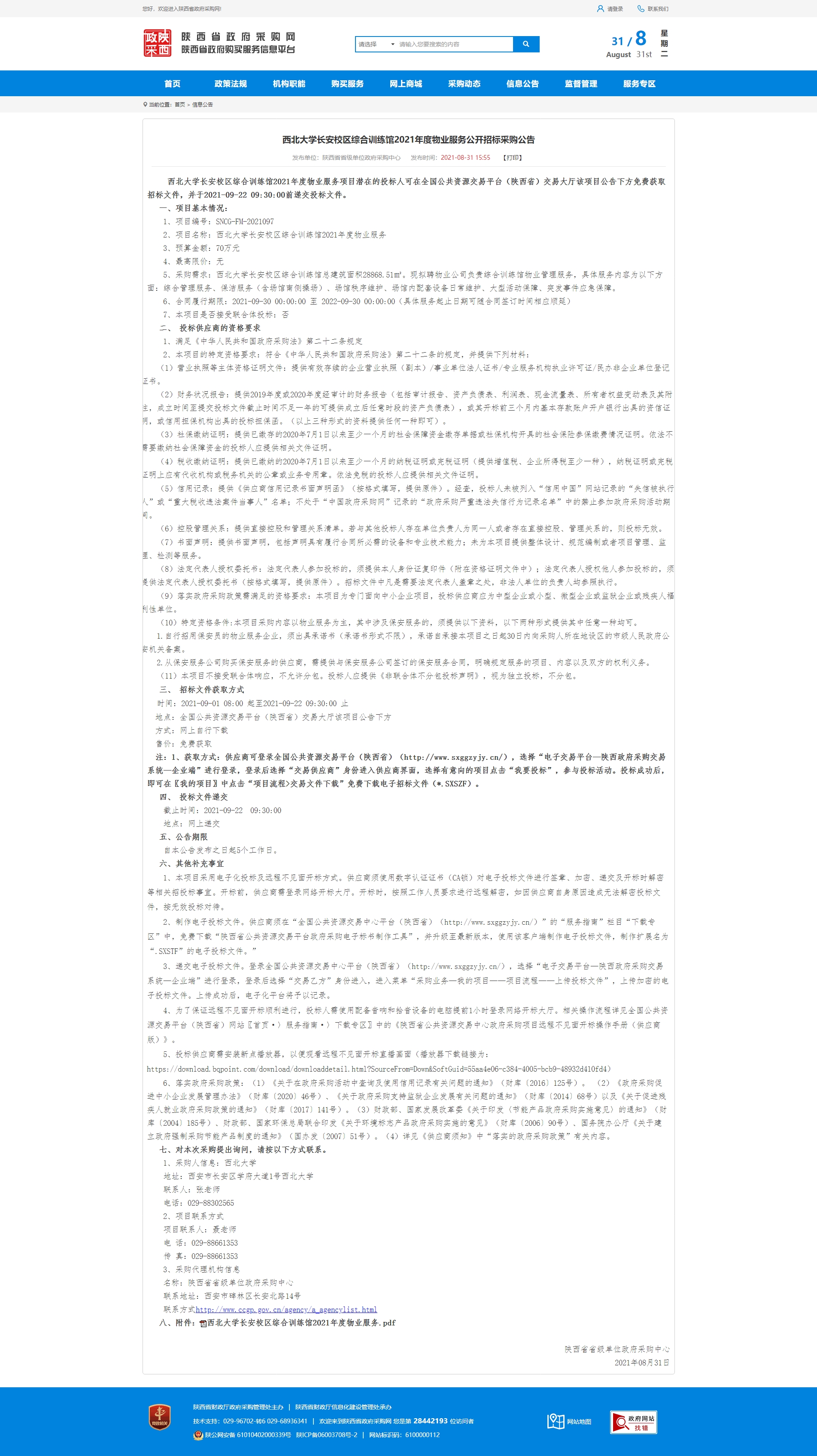 伟德国际1949始于英国长安校区综合训练馆2021年度物业服务公开招标采购公告