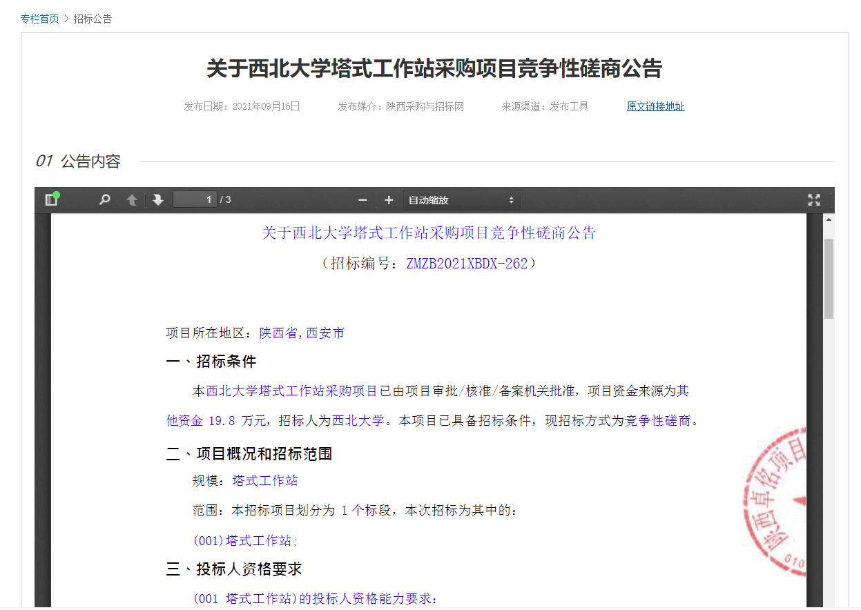 关于伟德国际1949始于英国塔式工作站采购项目竞争性磋商公告 作者: 编辑:采购与招标办公室 时间:2021-09-17 原公告地址:http://bulletin.sntba.com/biddingBulletin/2021-09-16/343853.html