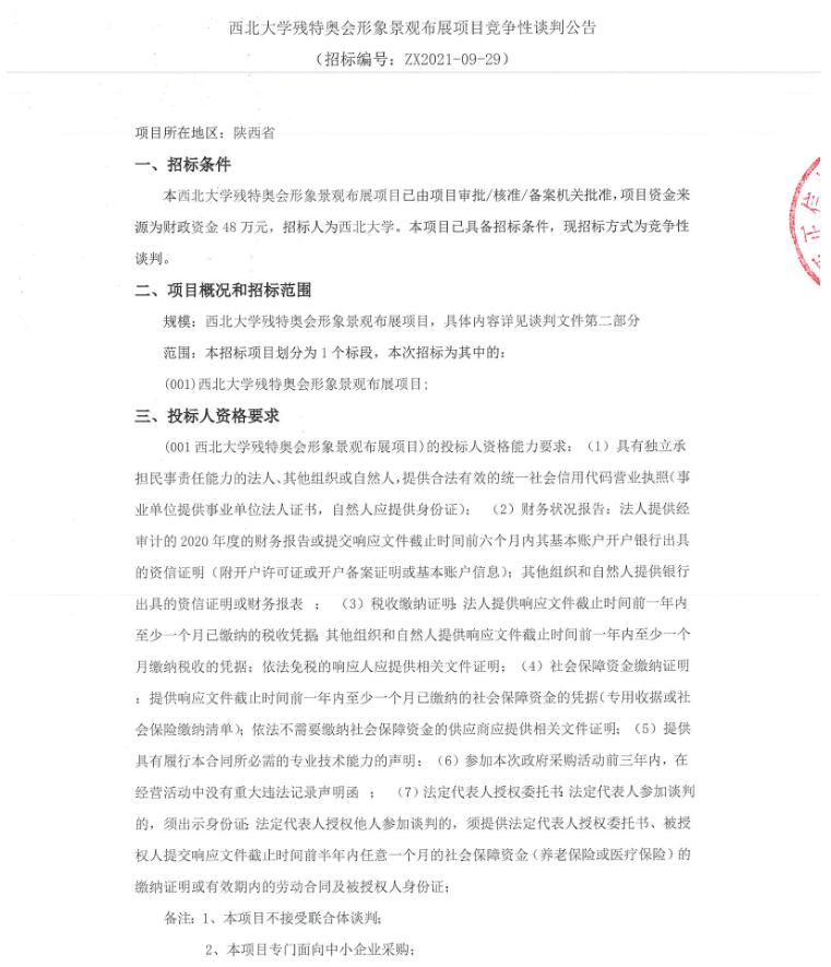 伟德国际1949始于英国残特奥会形象景观布展项目竞争性谈判公告