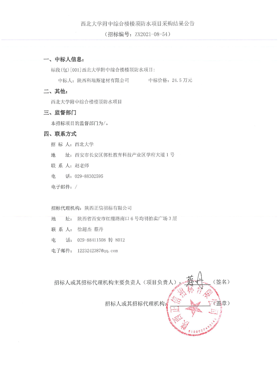 伟德国际1949始于英国附中综合楼楼顶防水项目采购结果公告