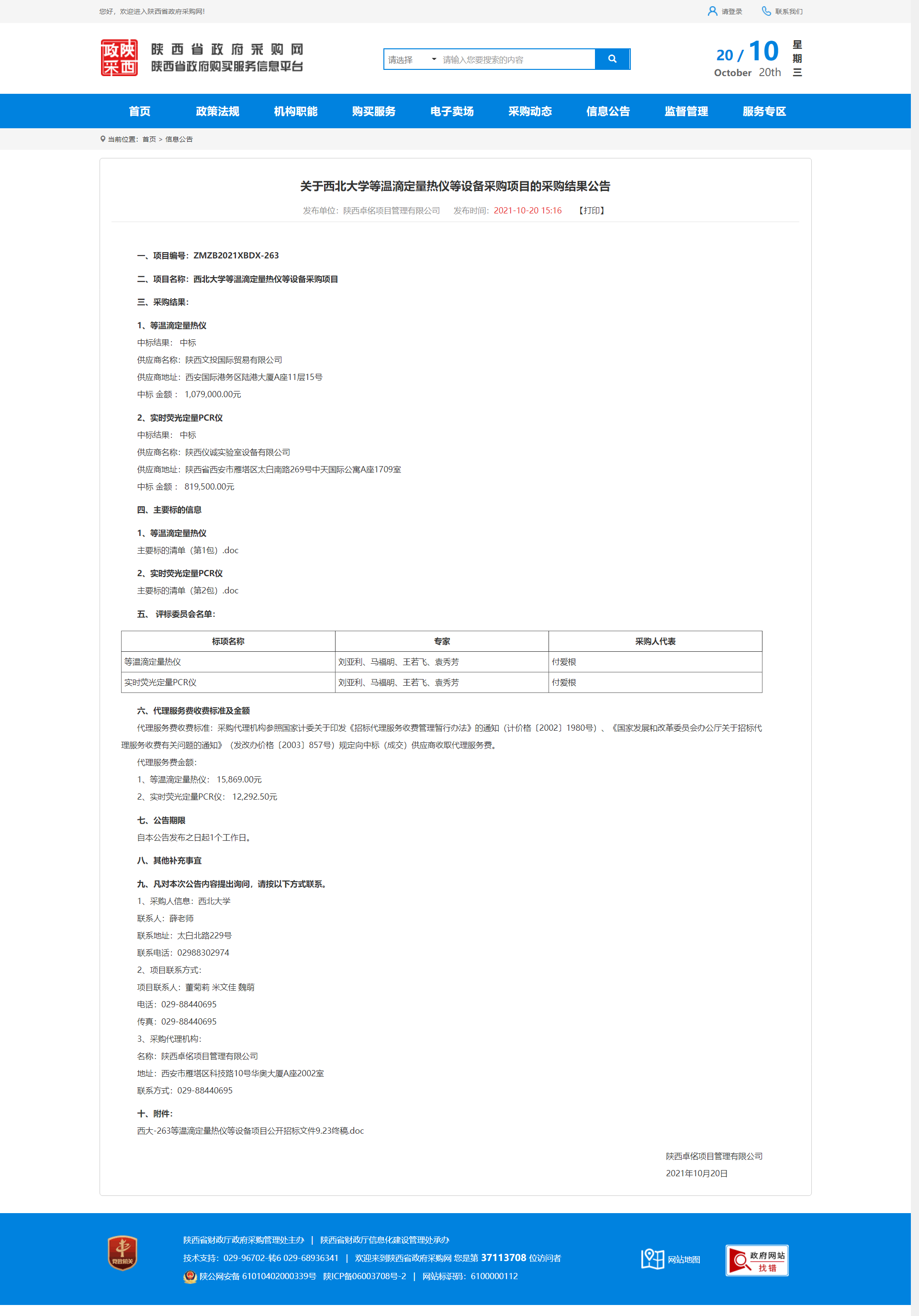 关于伟德国际1949始于英国等温滴定量热仪等设备采购项目的采购结果公告 作者: 编辑:采购与招标办公室 时间:2021-10-20 原公告地址:http://www.ccgp-shaanxi.gov.cn/notice/noticeDetail.do?noticeguid=8a85be347c20ca18017c9c8904bf7cd9