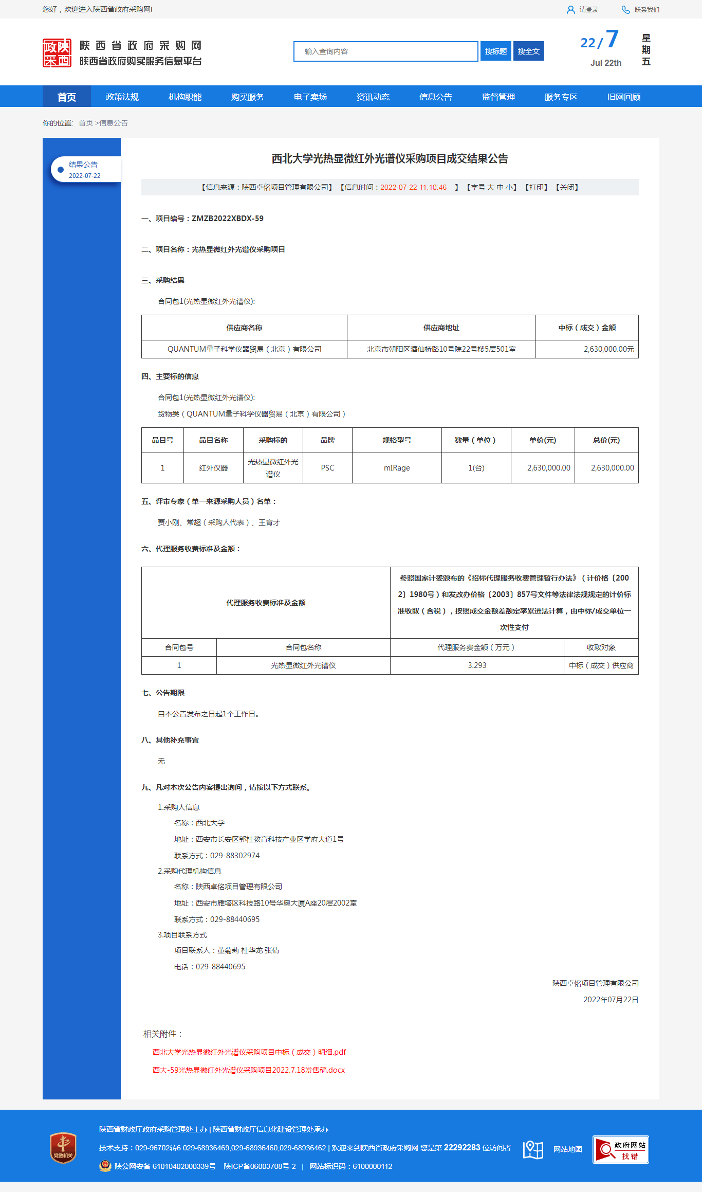 伟德国际1949始于英国光热显微红外光谱仪采购项目成交结果公告 作者: 编辑:采购与招标办公室 时间:2022-07-22 原公告链接:http://www.ccgp-shaanxi.gov.cn/freecms/site/shaanxi/ggxx/info/2022/8a69c82b821eee7e018223ddf6f60055.html?noticeType=001025¬iceId=439f922a-096c-11ed-9a8e-08c0eb20c666