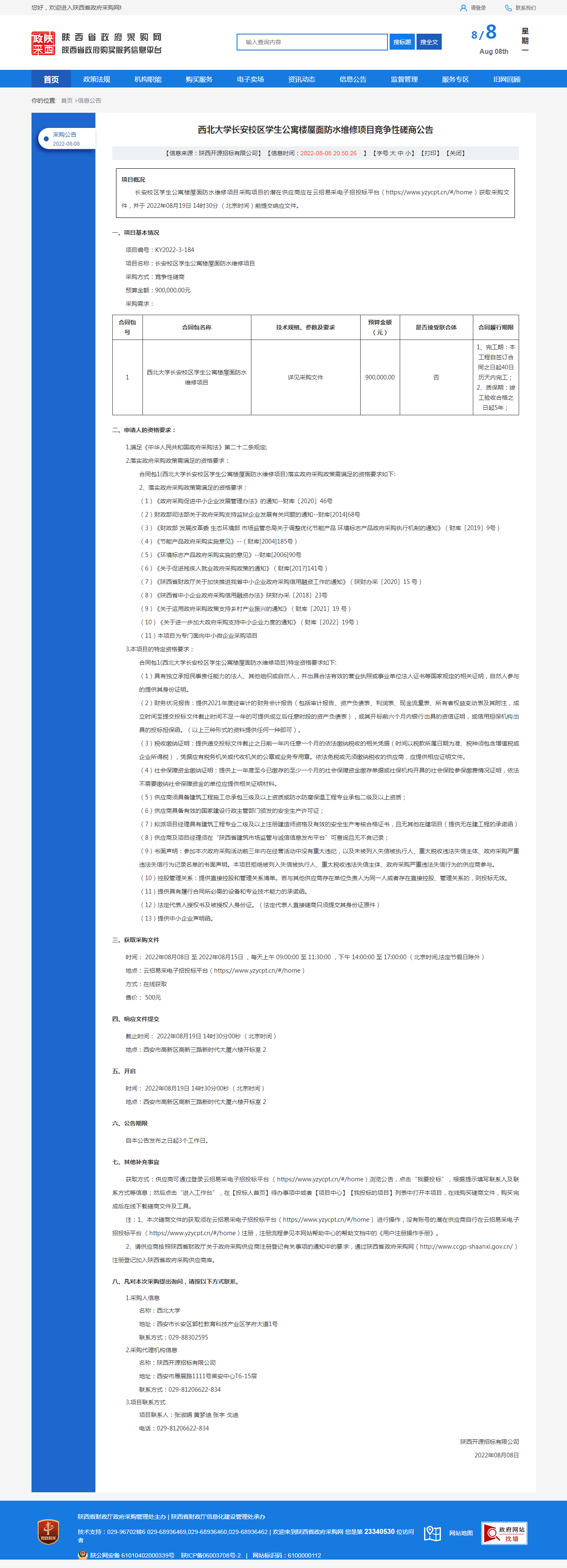 伟德国际1949始于英国长安校区学生公寓楼屋面防水维修项目竞争性磋商公告