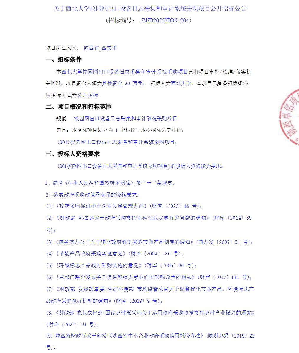 伟德国际1949始于英国校园网出口设备日志采集和审计系统采购项目公开招标公告