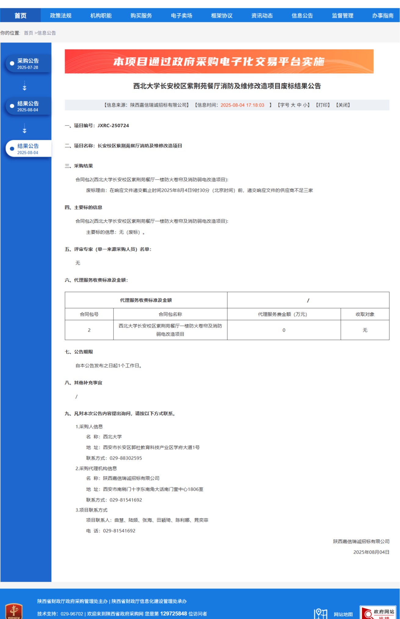 伟德国际1949始于英国长安校区紫荆苑餐厅消防及维修改造项目废标结果公告 作者: 编辑:党丹珩 时间:2025-08-04 公告地址:http://www.ccgp-shaanxi.gov.cn/freecms/site/shaanxi/ggxx/info/2025/8a69c0c89860f6020198742efac05b51.html?noticeType=001006¬iceId=f838eaa2-7115-11f0-8063-08c0eb20c666
