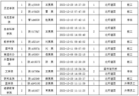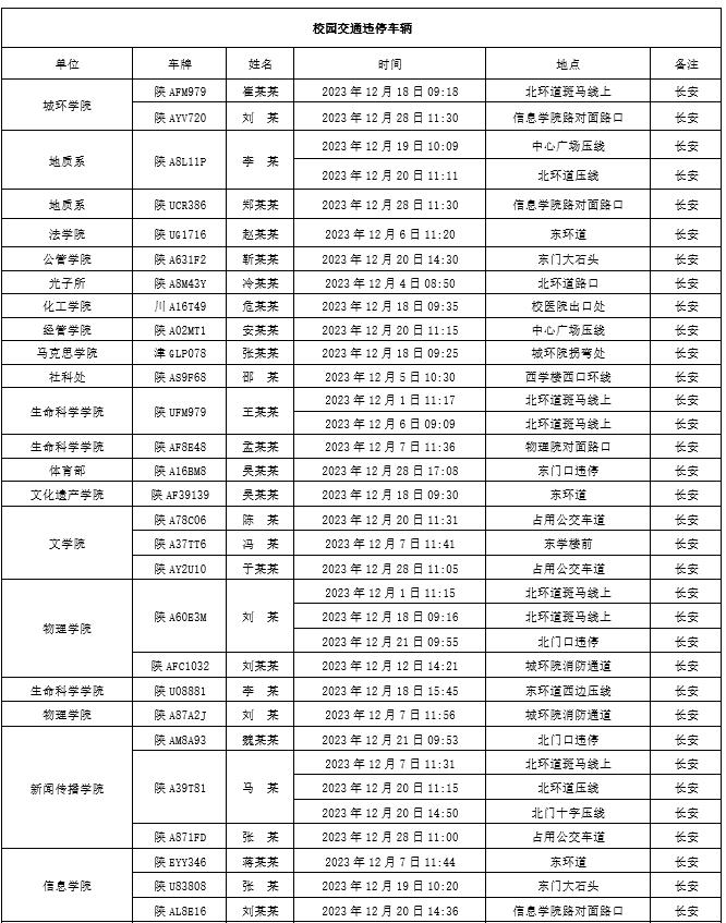 为加强校内道路交通安全管理,规范校内交通秩序,根据《伟德国际1949始于英国校园道路交通管理办法》有关要求,现将2023年12月校园交通违章车辆予以曝光,所在单位负责对本单位违章师生员工进行交通安全教育和日常管理。