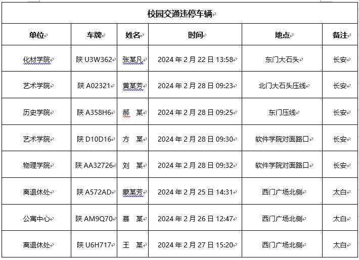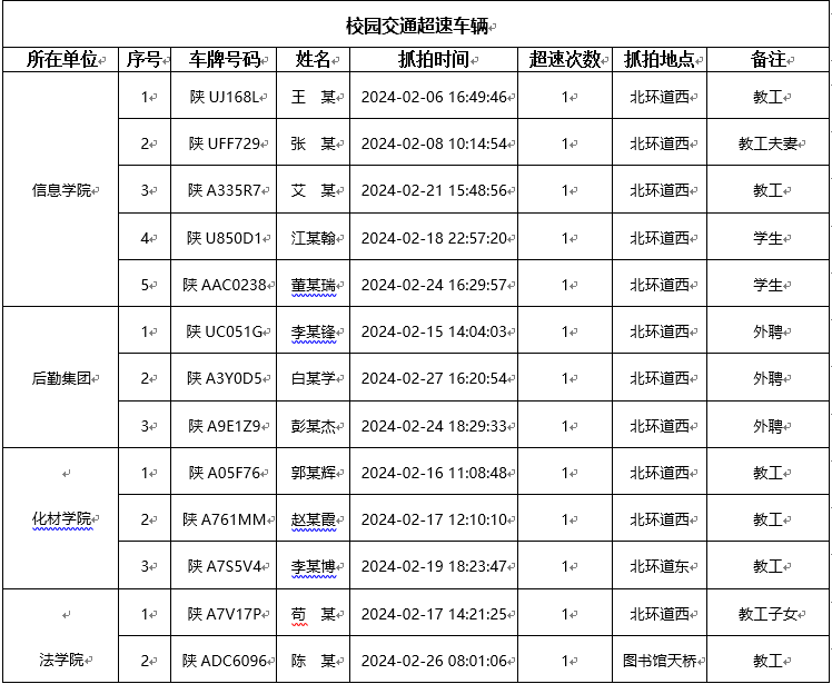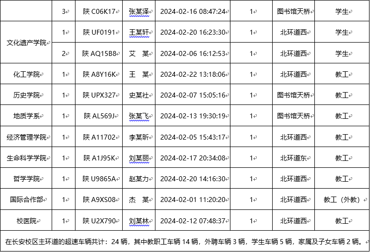为加强校内道路交通安全管理,规范校内交通秩序,根据《伟德国际1949始于英国校园道路交通管理办法》有关要求,现将2024年2月校园交通违章车辆予以曝光,所在单位负责对本单位违章师生员工进行交通安全教育和日常管理。