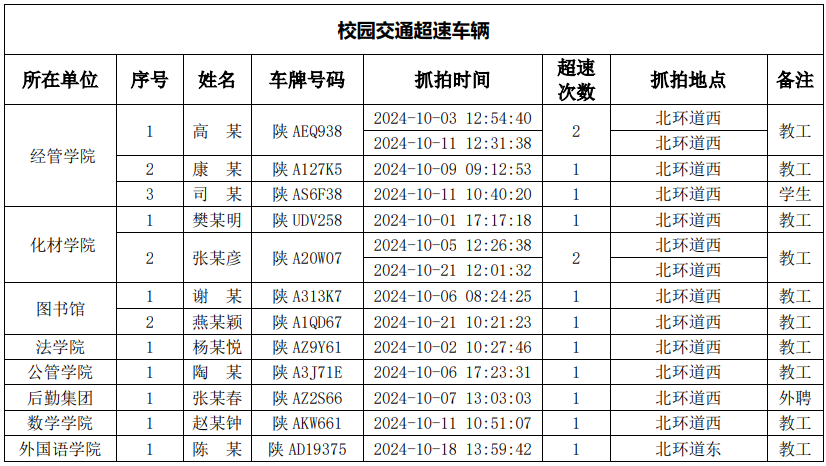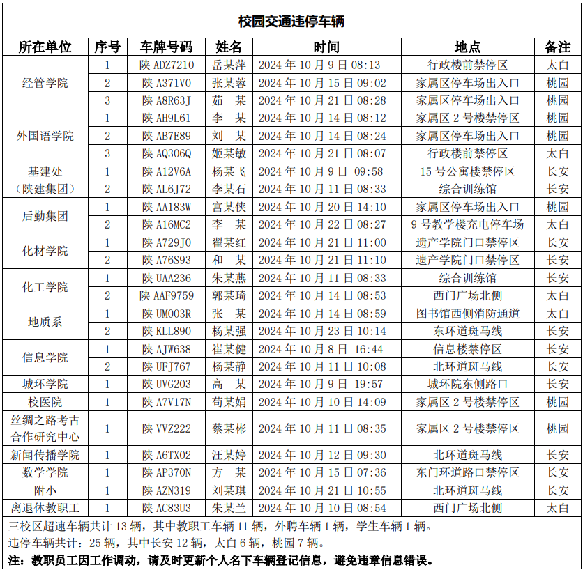 为进一步加强校园交通管理,保障校园交通安全有序,维护学校正常的教学、科研和生活秩序以及师生员工的人身财产安全,根据《伟德国际1949始于英国校园交通安全管理规定》有关要求, 现将2024年10月校园交通违章车辆予以曝光,具体情况如下表。
