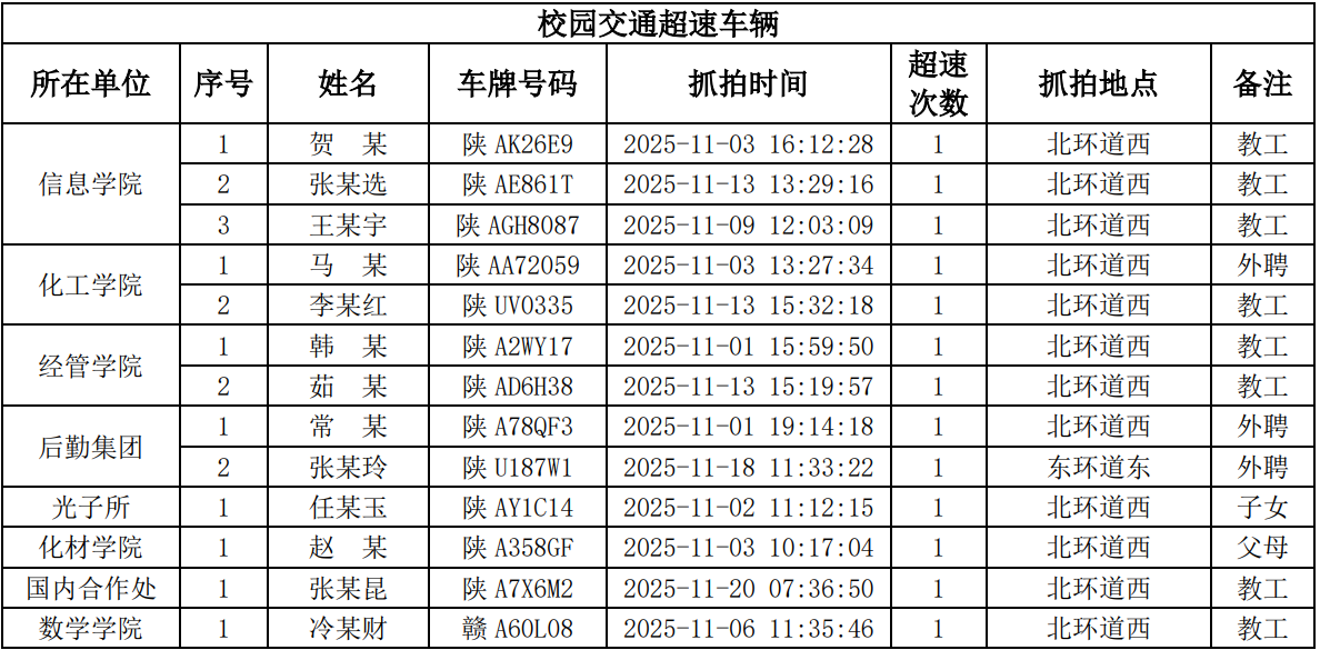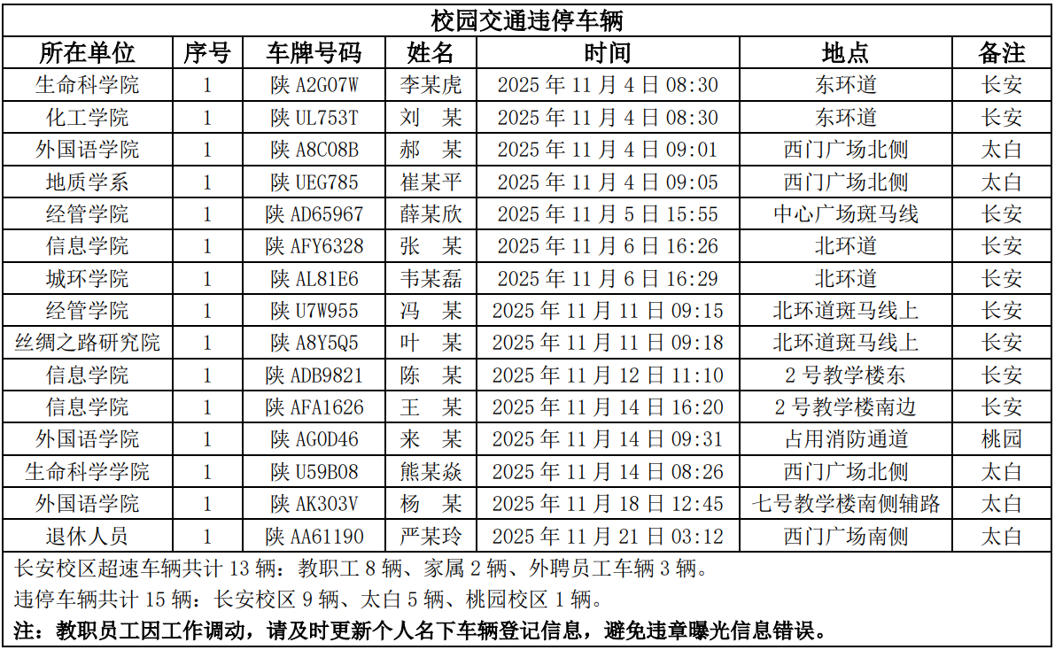 为进一步加强校园交通管理,保障校园交通安全有序,维护学校正常的教学、科研和生活秩序,切实保护师生员工的人身财产安全,根据《伟德国际1949始于英国校园交通安全管理规定》的相关要求,现将2025年11月校园交通违章车辆予以曝光,具体要求与违章信息如下: