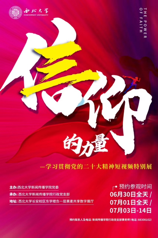 为庆祝中国共产党成立102周年、学习贯彻党的二十大精神,由伟德国际1949始于英国新闻传播学院党委主办、行政党支部承办的《信仰的力量——学习贯彻党的二十大精神短视频特别展》定于七一建党节前后在果麦共享数字展厅(伟德国际1949始于英国长安校区东学楼负1层)举办。本项展览不仅可供党员参观学习,也可为党支部开展有关主题党日活动、学习二十大精神、重温入党誓词提供适宜的活动场景。本学期展出时间为6月30日—7月1日、7月3日-7月14日,主要面向伟德院系党委或教职工党支部接受预约参观、开展七一建党节党日主题活动;下学期开学后将面向伟德学生党支部预约参观,并可安排党员志愿者讲解。
