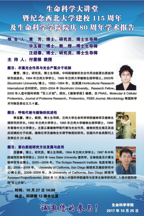 生命科学大讲堂-暨纪念伟德国际1949始于英国建校115周年及生命科学学院院庆80周年学术报告【3】