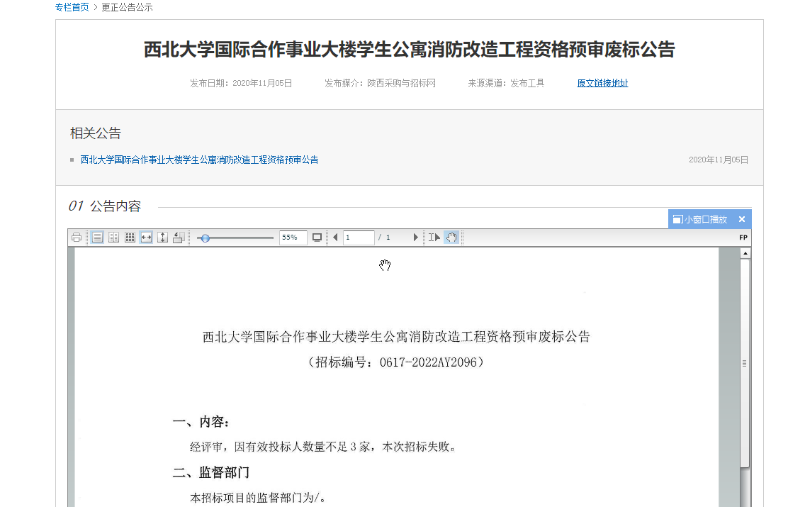 伟德国际1949始于英国国际合作事业大楼学生公寓消防改造工程资格预审废标公告 作者: 编辑: 时间:2020-11-05 原文链接:http://bulletin.sntba.com/changeBulletin/2020-11-05/241067.html