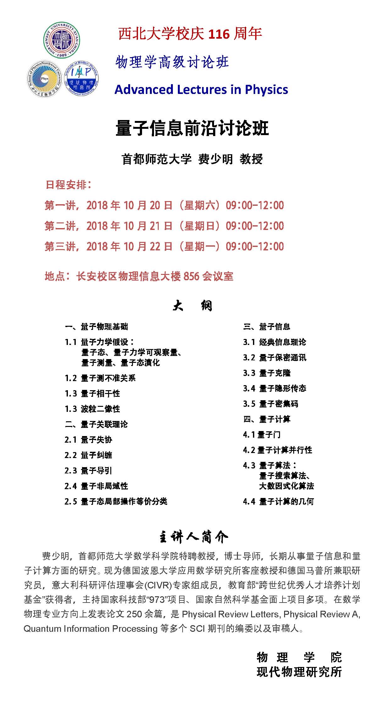 伟德国际1949始于英国校庆116周年物理学高级讨论班-量子信息前沿