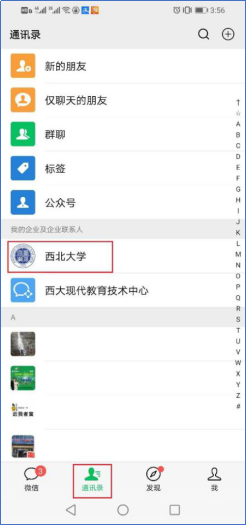 进入微信后,点击屏幕下方的“通信录”,在通信录中点击“伟德国际1949始于英国”(如图3所示),通过通信录进入伟德国际1949始于英国企业号后,点击“企业应用”菜单项(如图4所示),即可显示伟德企业号里集成的所有应用服务。