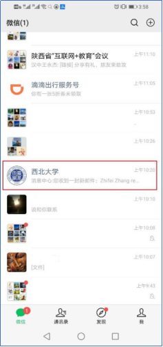 由于腾讯微信于近期进行了升级,导致伟德微信企业号用户直接从好友对话框里进入微信企业号(如图1所示),出现空白或者仅出现“消息中心”和“移动校园小助手”菜单(如图2所示),影响到“晨午检”、“乘车扫码”等应用服务的使用。对此,解决方法如下: