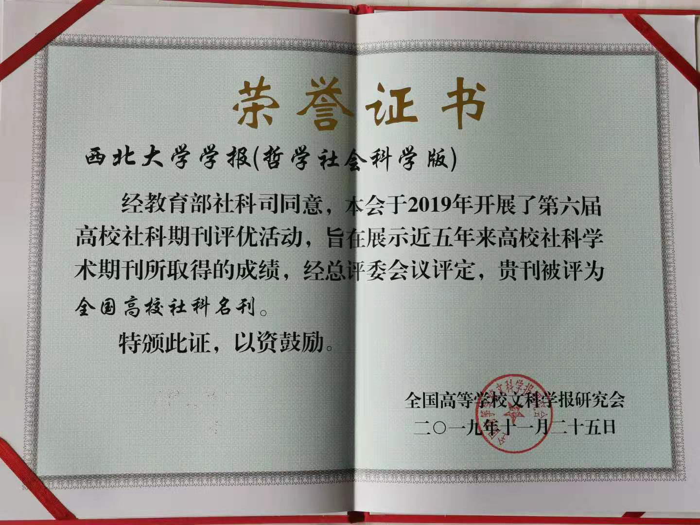 为深入贯彻落实党的十九大精神和习近平新时代中国特色社会主义思想,检阅近五年来全国高校社科学术期刊的办刊成绩,进一步探索期刊未来发展之路,全国高等学校文科学报研究会于2019年上半年开展了第六届评优活动。此次评优活动通过各省(市、自治区)高校学报研究会初评推荐,经全国高校社科期刊专家评审会议汇评,采取统一评分、专家讨论、定量与定性相结合的评选办法,从一千多家高校学报中评选出全国高校社科名刊、精品期刊和优秀期刊,并对从事编辑工作的个人进行评优。