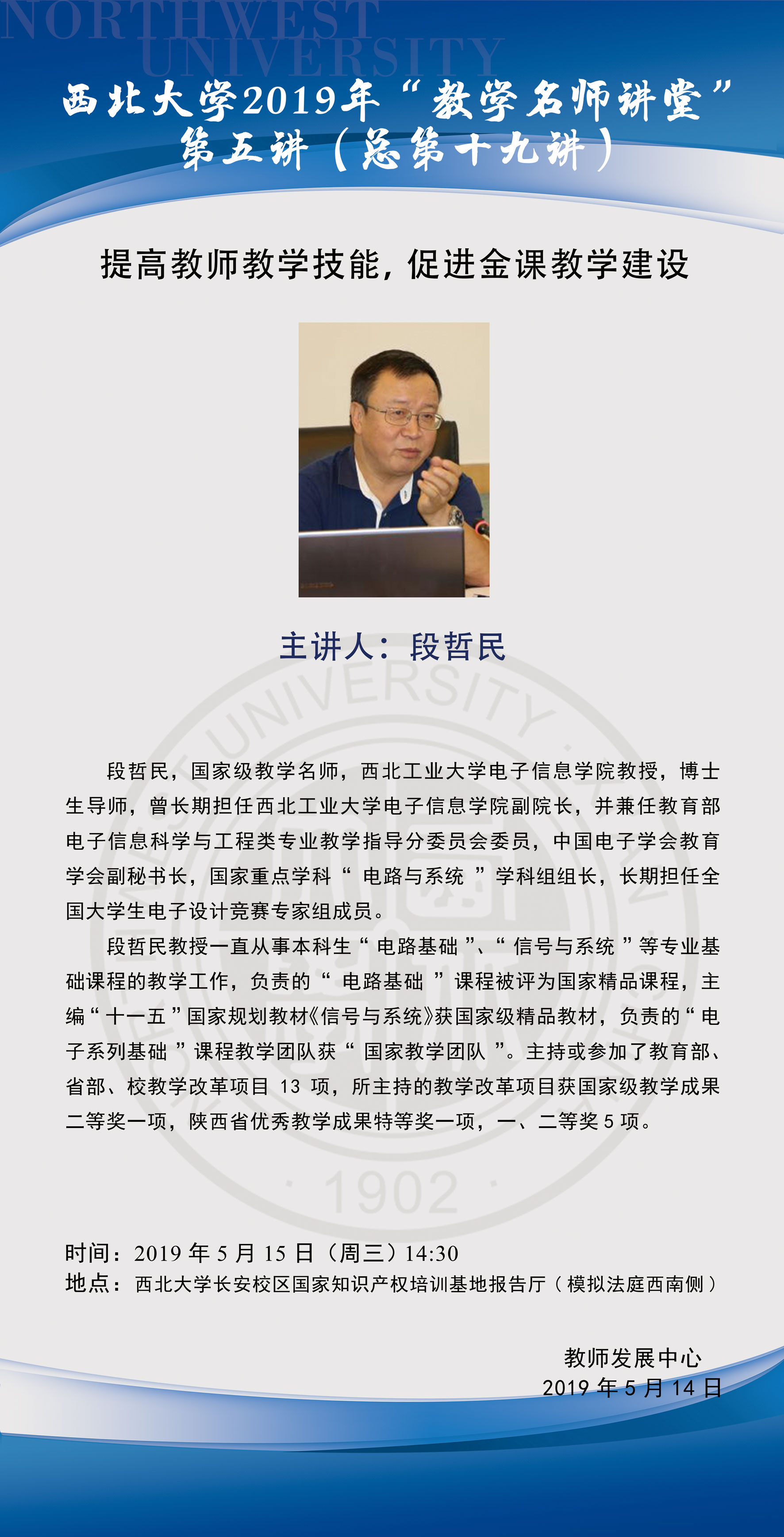 2019年教学名师讲堂第五讲 - 提高教师教学技能,促进金课教学建设