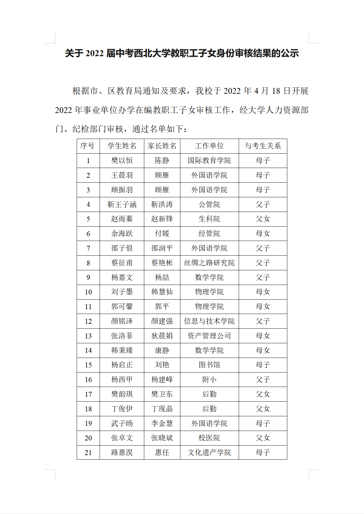 关于2022届中考伟德国际1949始于英国教职工子女身份审核结果的公示
