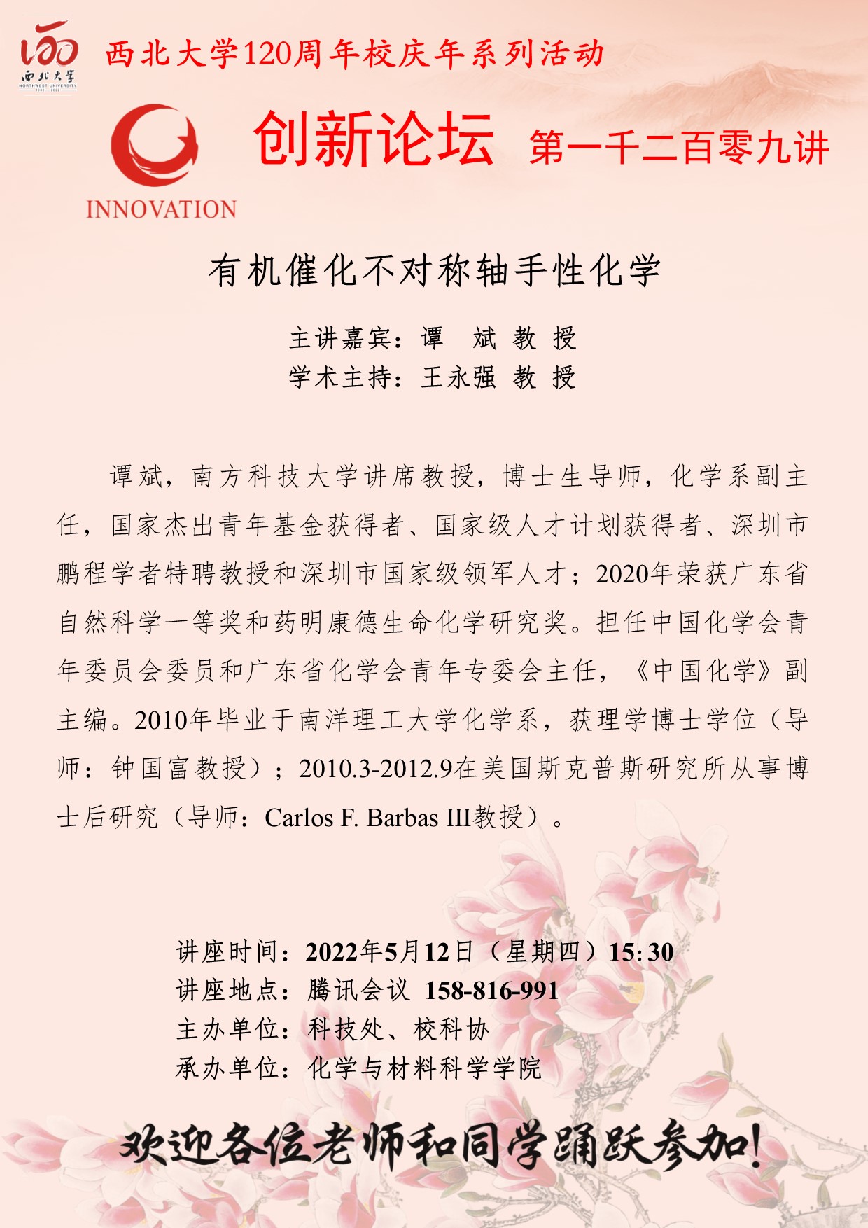 伟德国际1949始于英国创新论坛第一千二百一十讲暨120周年校庆年系列活动:多环天然产物合成中的环系构建