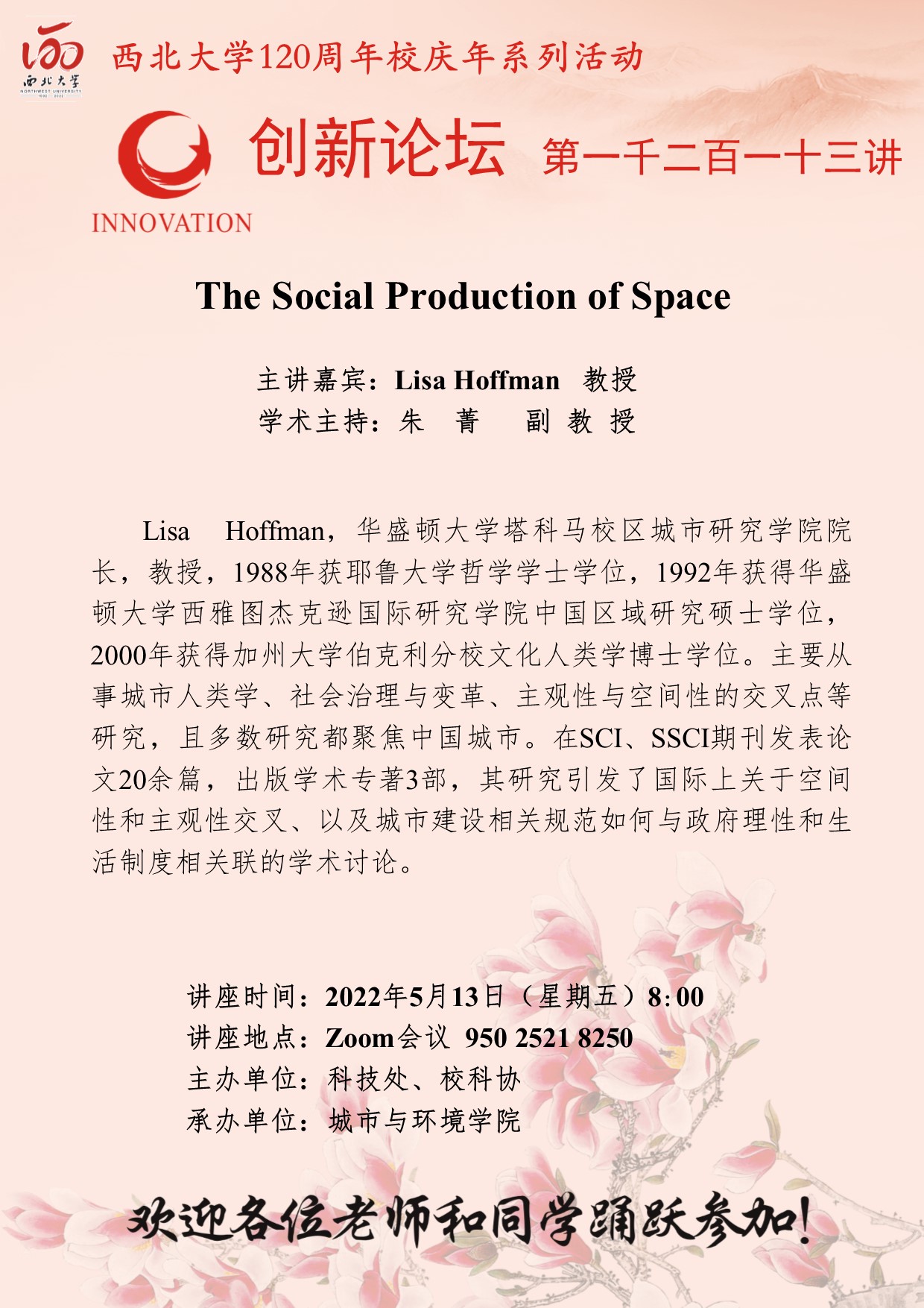 伟德国际1949始于英国创新论坛第一千二百一十三讲暨120周年校庆年系列活动:The Social Production of Space 作者:Lisa Hoffman 教授 编辑: 时间:2022-05-12