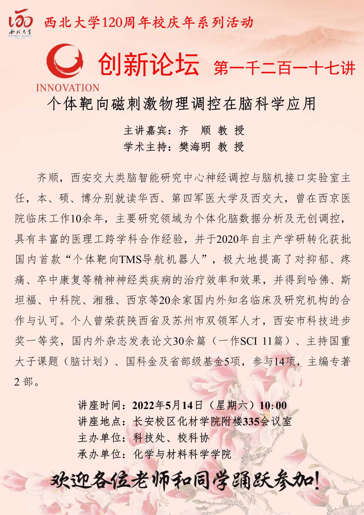 伟德国际1949始于英国创新论坛第一千二百一十六讲暨120周年校庆年系列活动:X射线激发光学成像及光动力学治疗研究