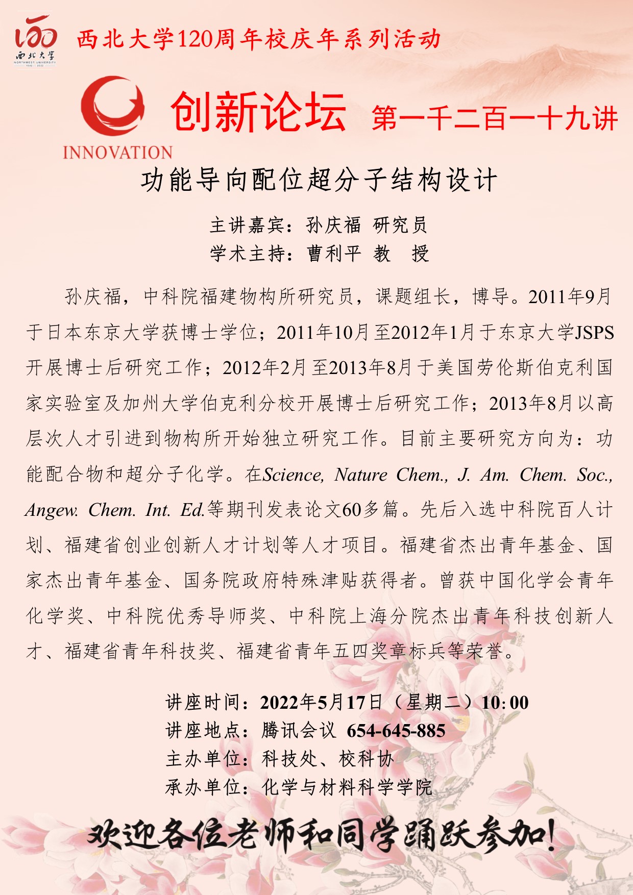 伟德国际1949始于英国创新论坛第一千二百二十讲暨120周年校庆年系列活动:杯芳烃—从大环受体到生物医用超分子材料