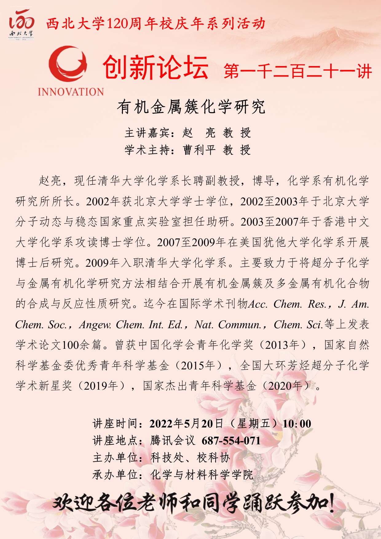 伟德国际1949始于英国创新论坛第一千二百二十讲暨120周年校庆年系列活动:杯芳烃—从大环受体到生物医用超分子材料