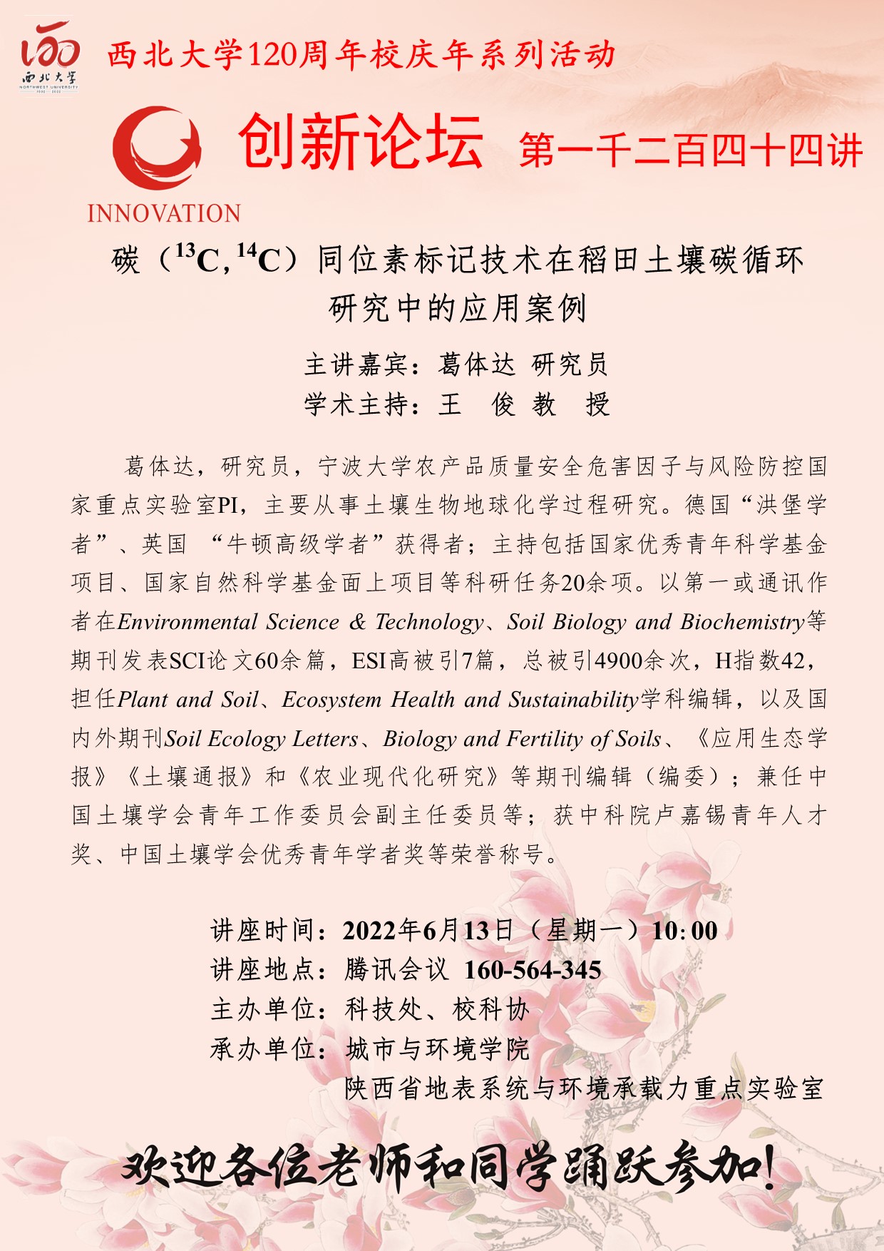 伟德国际1949始于英国创新论坛第一千二百四十四讲暨120周年校庆年系列活动:碳(13C,14C)同位素标记技术在稻田土壤碳循环研究中的应用案例 作者:葛体达 研究员 编辑: 时间:2022-06-10