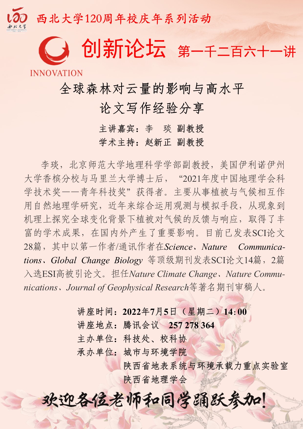 伟德国际1949始于英国创新论坛第一千二百六十二讲暨120周年校庆年系列活动:冻土区碳释放及其对全球变化的响应
