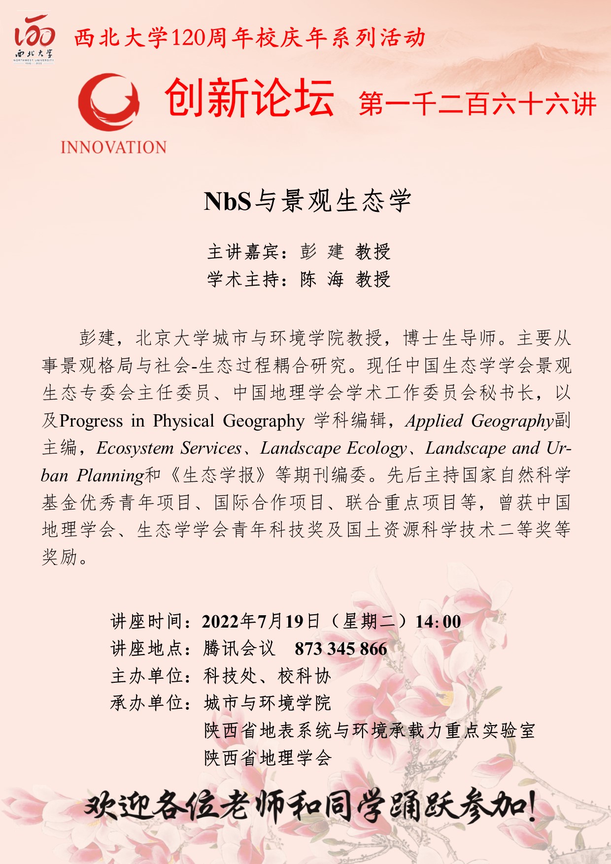伟德国际1949始于英国创新论坛第一千二百六十六讲暨120周年校庆年系列活动:NbS与景观生态学