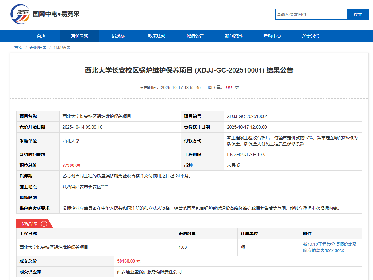 伟德国际1949始于英国锅炉排放污染物指标监测服务采购项目(XDJJ-FW-202509002)竞价结果公告