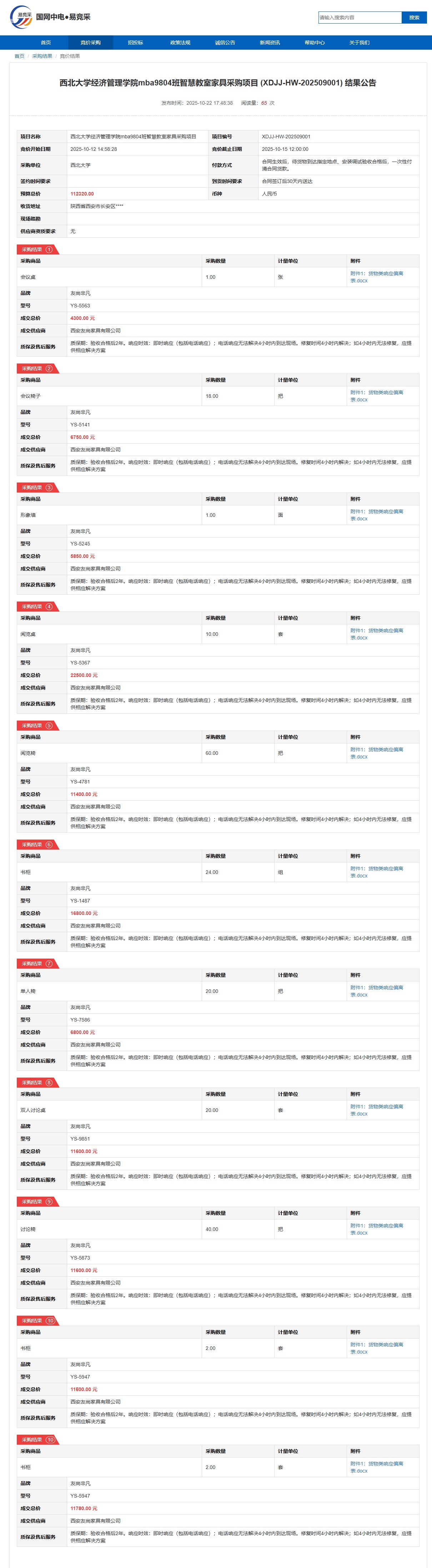 伟德国际1949始于英国经济管理学院mba9804班智慧教室家具采购项目(XDJJ-HW-202509001)竞价结果公告
