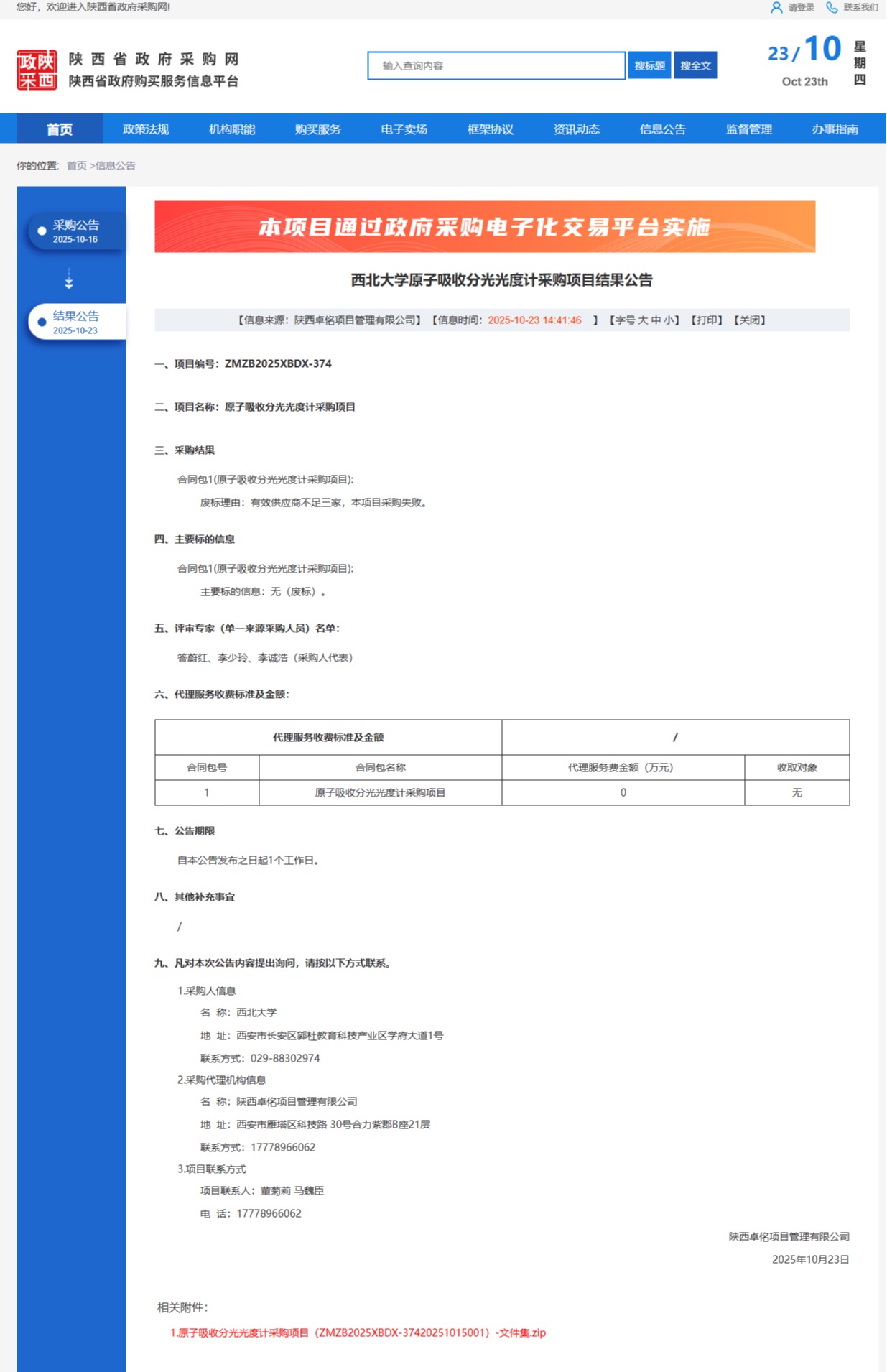伟德国际1949始于英国原子吸收分光光度计采购项目结果公告