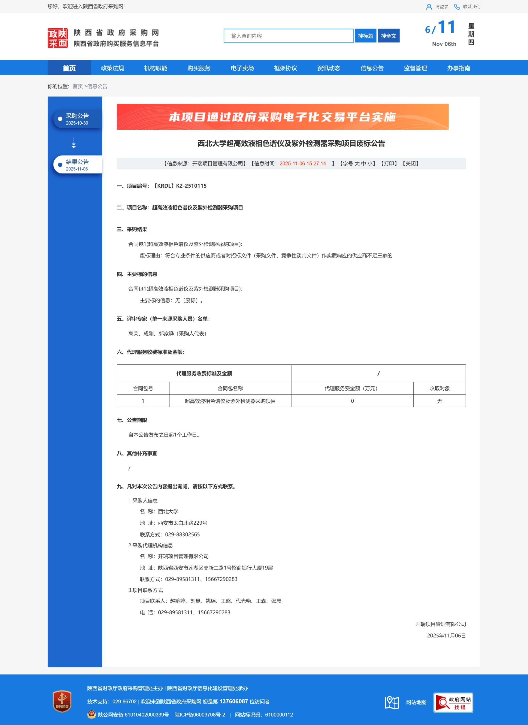 伟德国际1949始于英国超高效液相色谱仪及紫外检测器采购项目废标公告 作者: 编辑:国有资产管理处 时间:2025-11-06 原公告链接:https://www.ccgp-shaanxi.gov.cn/freecms/site/shaanxi/ggxx/info/2025/8a69c6c799f7737f019a5806d9fe1d4e.html?noticeType=001006¬iceId=3938e233-bae4-11f0-8063-08c0eb20c666