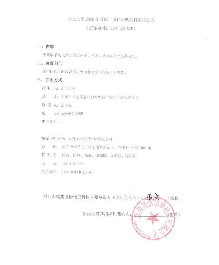 伟德国际1949始于英国2026年教职工蛋糕采购项目废标公告