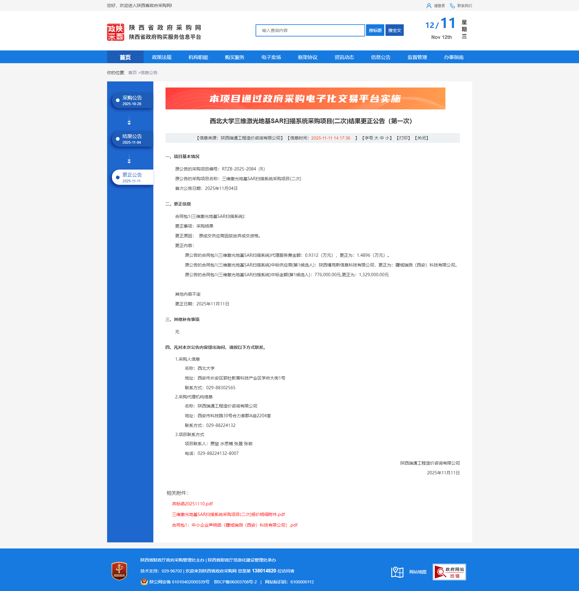 伟德国际1949始于英国三维激光地基SAR扫描系统采购项目(二次)结果更正公告(第一次)