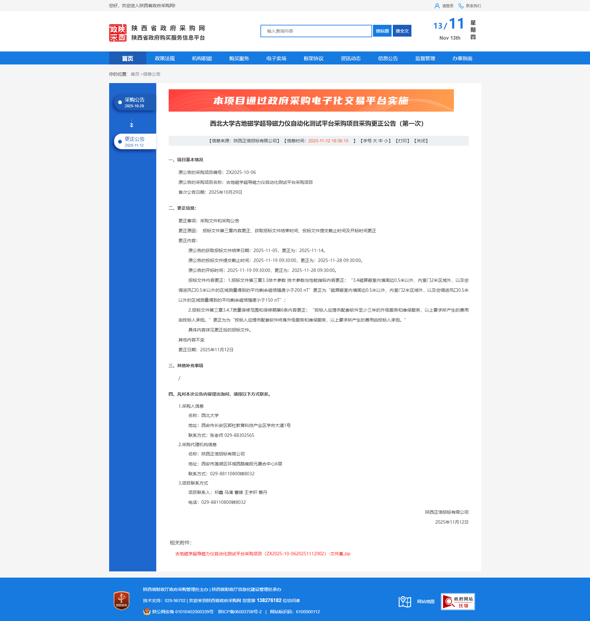 伟德国际1949始于英国古地磁学超导磁力仪自动化测试平台采购项目采购更正公告(第一次)