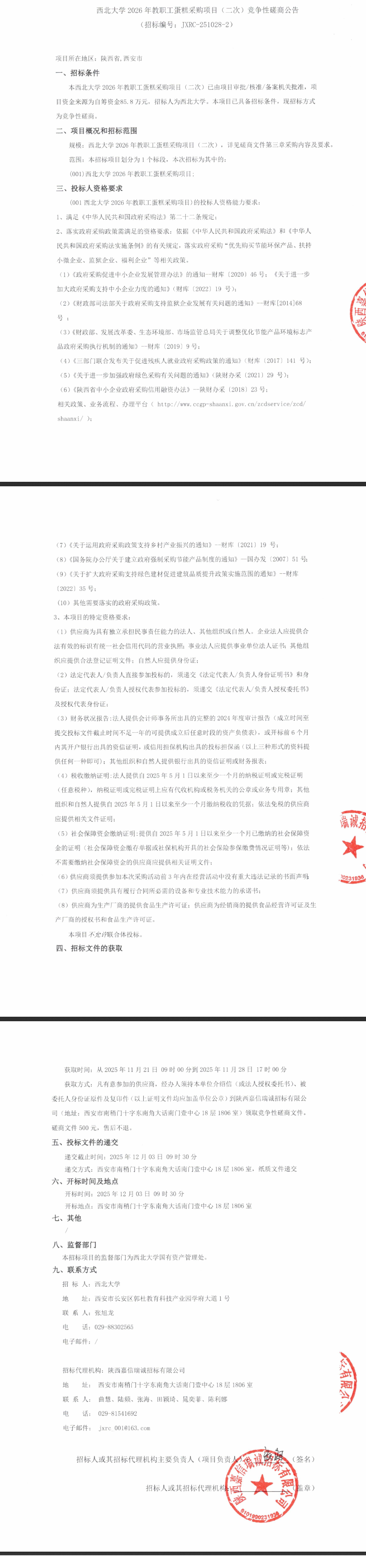 伟德国际1949始于英国2026年教职工蛋糕采购项目(二次)竞争性磋商公告 作者: 编辑:国有资产管理处 时间:2025-11-21 原公告链接:http://bulletin.sntba.com/biddingBulletin/2025-11-21/2139464.html