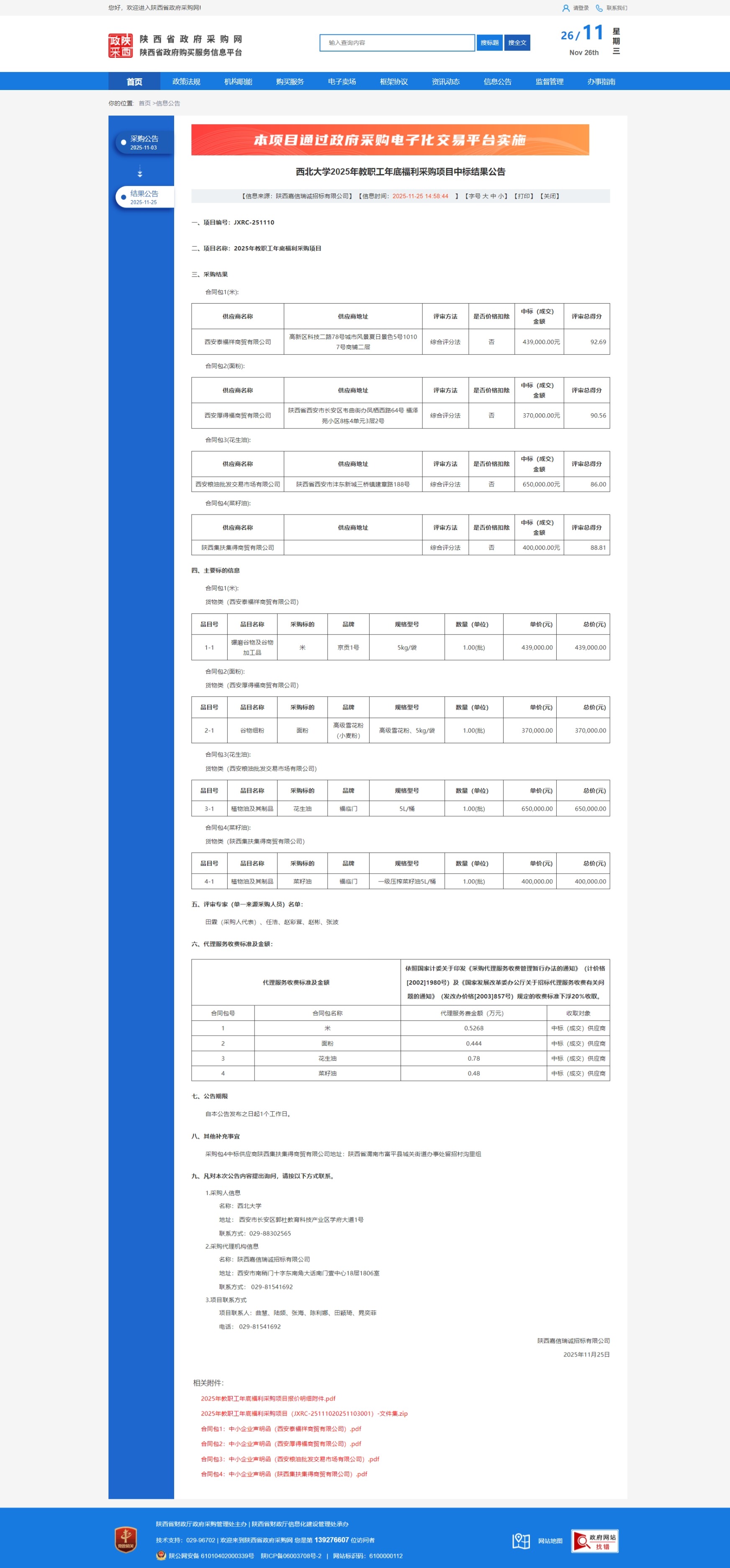 伟德国际1949始于英国2025年教职工年底福利采购项目中标结果公告 作者: 编辑:国有资产管理处 时间:2025-11-26 原公告链接:https://www.ccgp-shaanxi.gov.cn/freecms/site/shaanxi/ggxx/info/2025/8a69c90c9a9ae48e019ab9102509472a.html?noticeType=001021¬iceId=6c90360a-c9ce-11f0-8063-08c0eb20c666