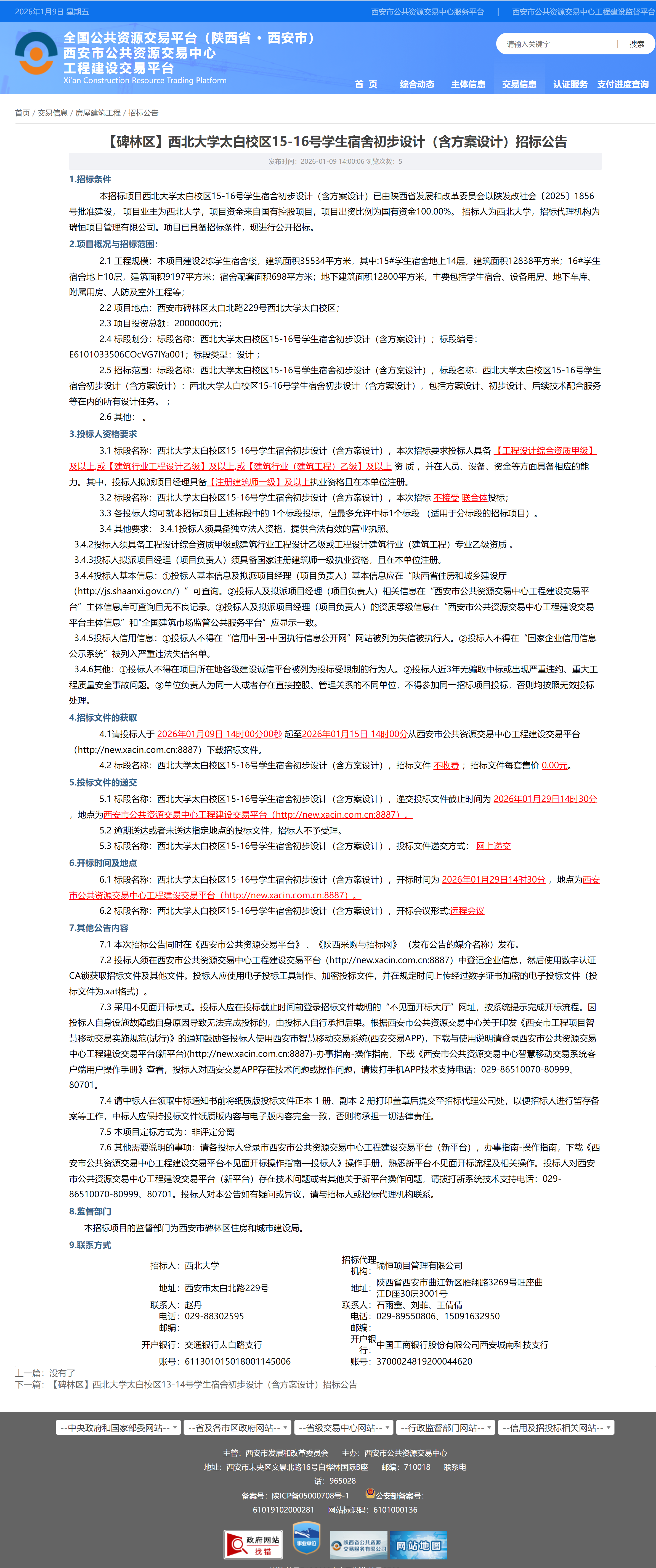 【碑林区】伟德国际1949始于英国太白校区13-14号学生宿舍初步设计(含方案设计)招标公告