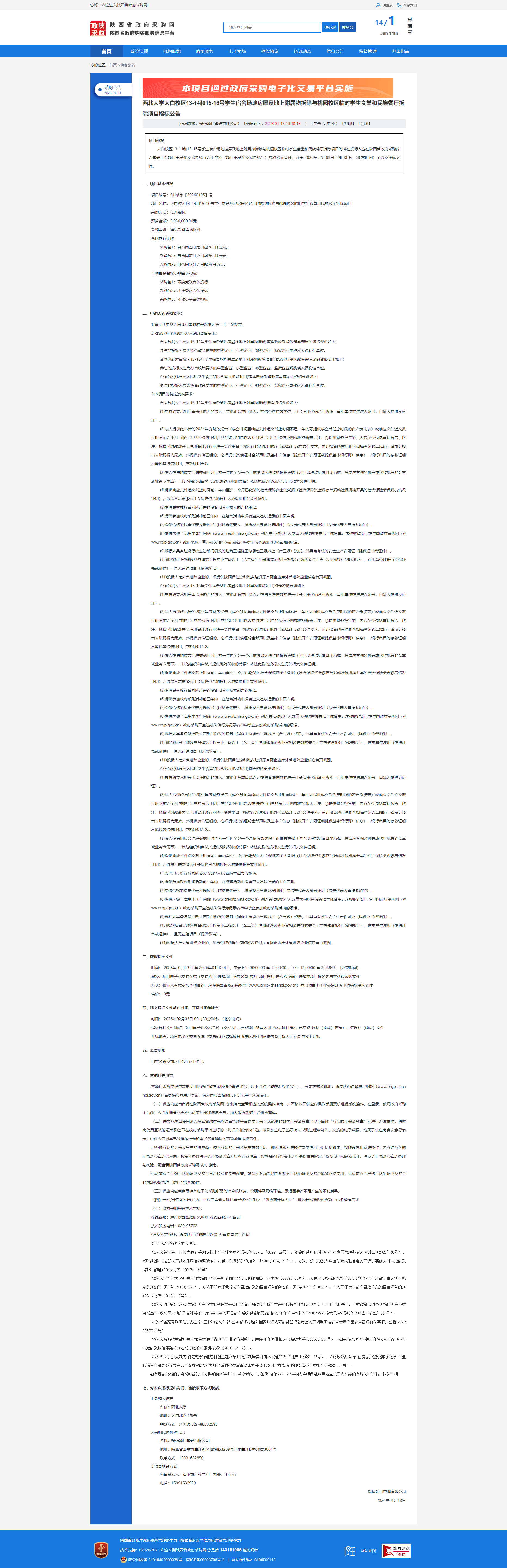 伟德国际1949始于英国太白校区13-14和15-16号学生宿舍场地房屋及地上附属物拆除与桃园校区临时学生食堂和民族餐厅拆除项目招标公告 作者:国有资产管理处 编辑:赵丹 时间:2026-01-13 原文链接